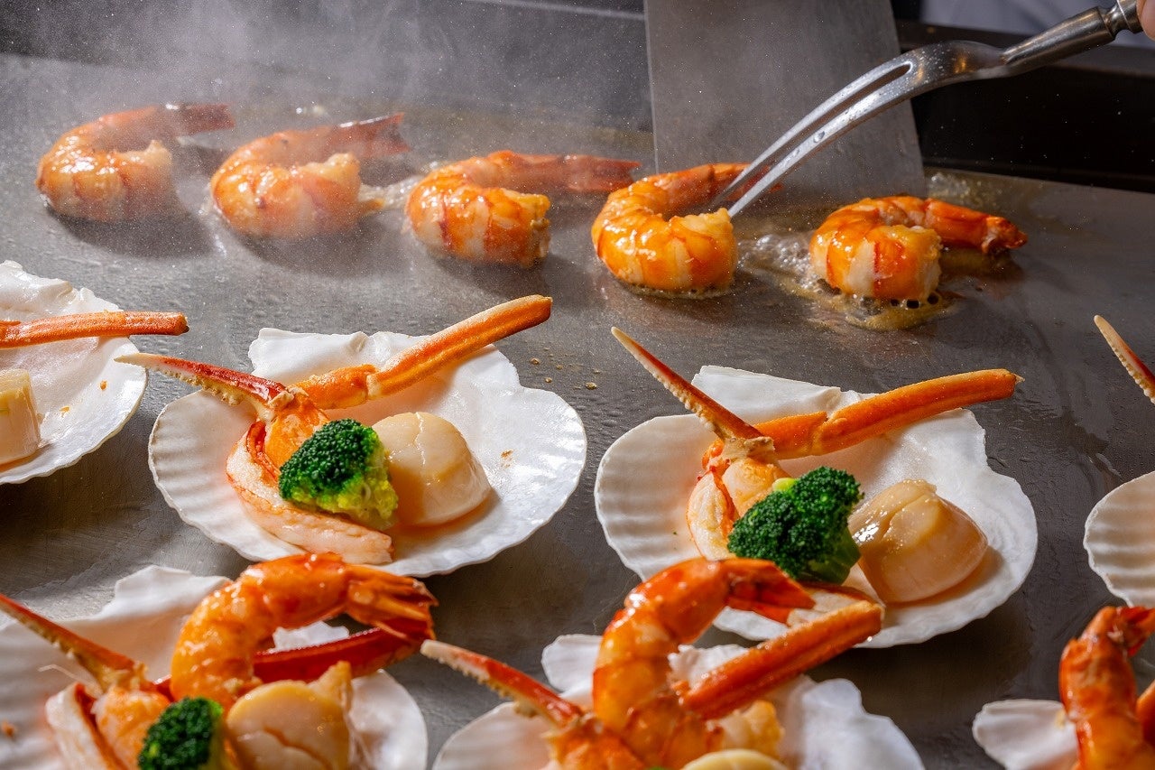 マグロ、いくら、甘えびなど6種の具材を乗せた「海鮮丼」や帆立・海老・蟹の「海鮮焼き」など、冬の食材を使った北海道のご当地グルメがブッフェで登場!
