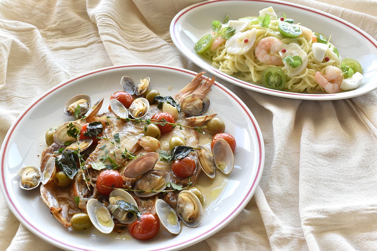 ACAO FORESTの麓にある商業施設「ACAO ROSE SQUARE」では、「ACAO SUMMER FOREST」に合わせ、夏に旬を迎える食材を使用した新商品の提供を開始します。網代のハイパー干物クリエイター藤間さんの金目鯛を使用したアクアパッツァ、水タコと海老の冷製パスタなどのフード、アイスケーキ“カッサータ”、ブリオッシュ生地のドーナツなどのスイーツをお楽しみください。