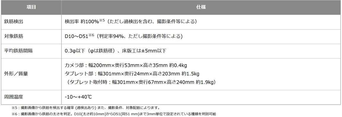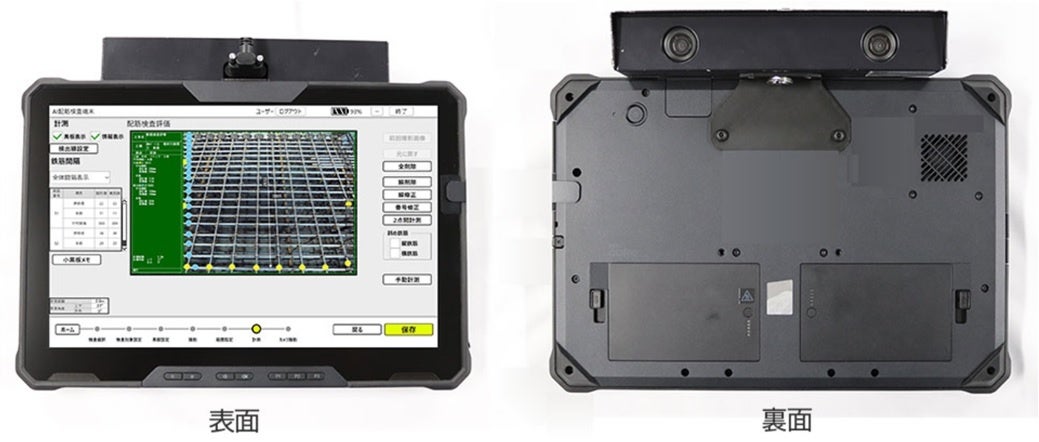 建設現場において配筋検査の省力化を実現するAI配筋検査端末の新製品として、広範囲および湾曲面の検査や軽量化を実現するとともに、タブレット部とステレオカメラ部を分離可能な製品となっております。