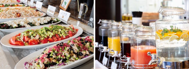 茨城県産の食材を中心にサラダバーや、ドリンクバー、スープ、温菜、冷菜、パスタ、デザート等の約30品目を