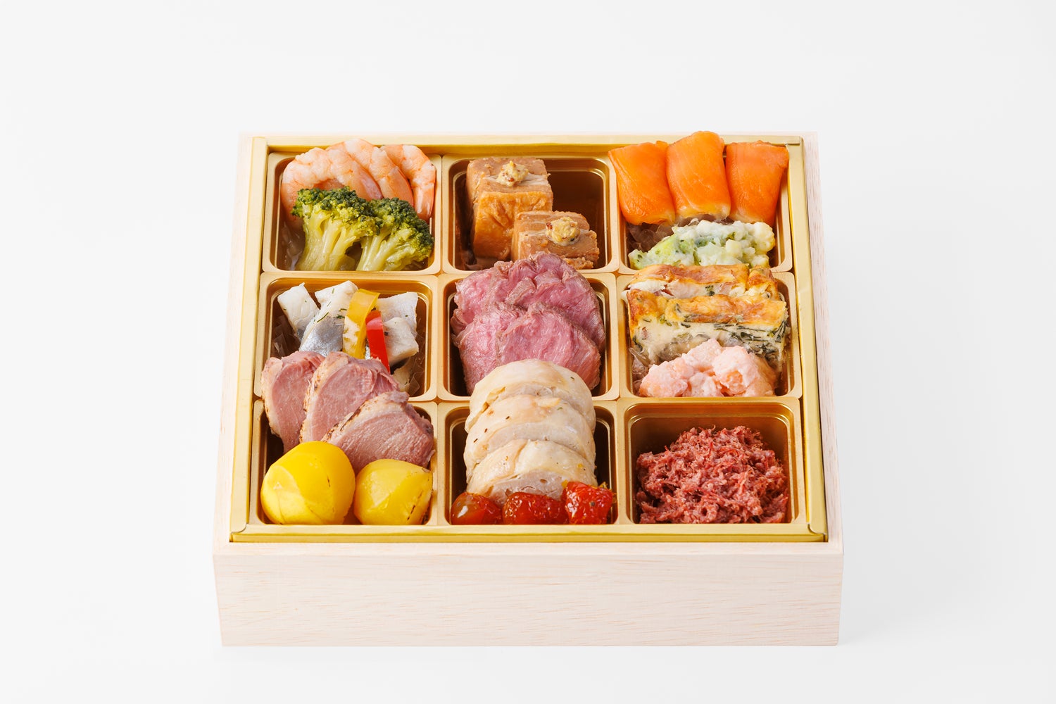 ご家族それぞれの好みに寄り添う、和洋折衷のバラティ豊かな二段重の贅沢おせちです。