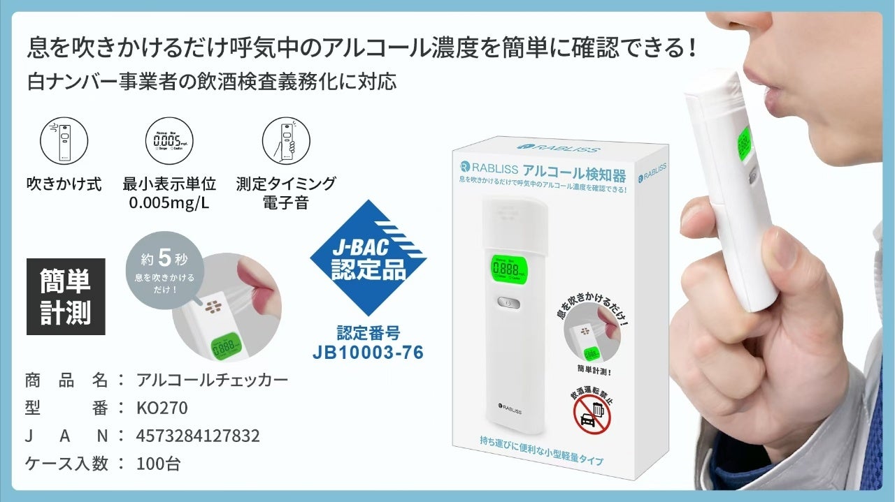 【RABLISS KO270 アルコール検知器】が、アルコール検知器協議会認定機器になりました!