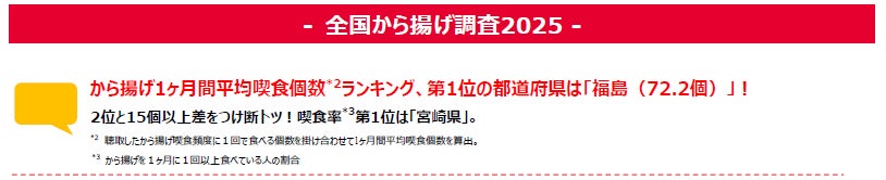 <全国から揚げ調査2025>から揚げが「好きなおかずランキング」1位を達成!年間総消費量は380億個超(推計値)!多岐に渡るから揚げを食べている「福島県」が県別ランキングで初の1位に!