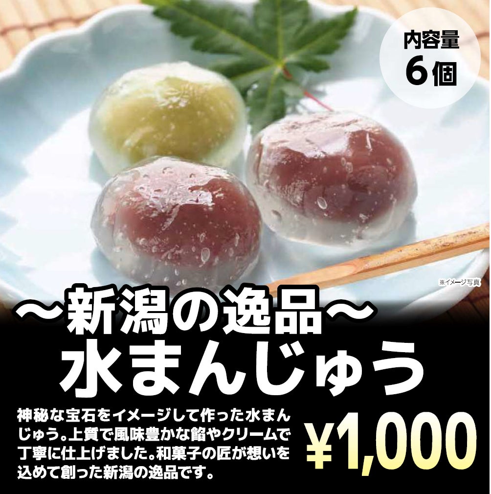 神秘な宝石をイメージして作った水まんじゅうです。上質な風味豊かな餡やクリームで丁寧に仕上げました。目で見て涼しく、お茶との相性も良いので、贈り物としても大変喜ばれます。和菓子の匠が想いを込めて創った新潟の逸品です。食べる度に新しい美味しさが口の中に広がります。