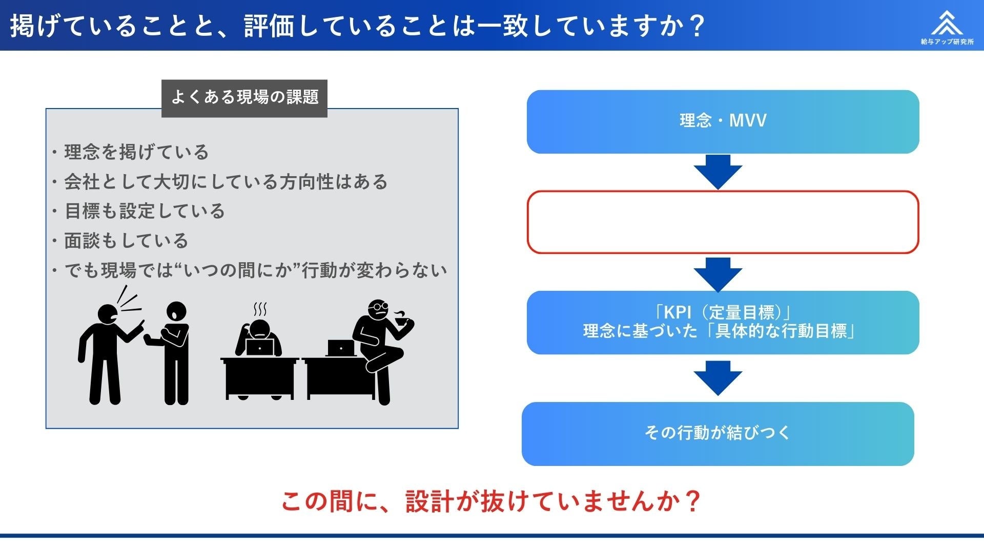 株式会社給与アップ研究所は、理念と評価を一貫させる評価設計モデルを示しました。