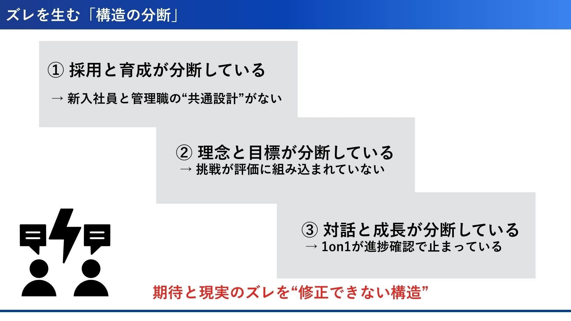 過度な遠慮(腫れ物マネジメント)/期待値の不明確さ/フィードバック不足