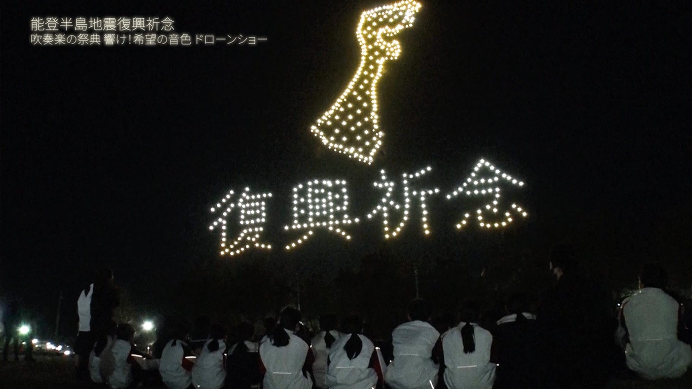 株式会社ドローンショー・ジャパン(本社:石川県金沢市、代表取締役:山本 雄貴)は、北國新聞社と共催し、2025年3月22日(土)に石川県鹿島郡中能登町「レクトピアパーク」にて、令和6年能登半島地震で被災した中学生・保護者・関係者向けのドローンショーを、合同演奏会「能登半島地震復興祈念 吹奏楽の祭典 輝け!希望の音色」終了後にサプライズで実施いたしました。