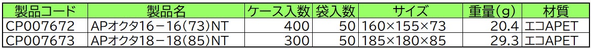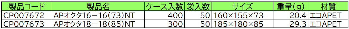 APオクタ16-16NT/18-18NT 新サイズを販売開始