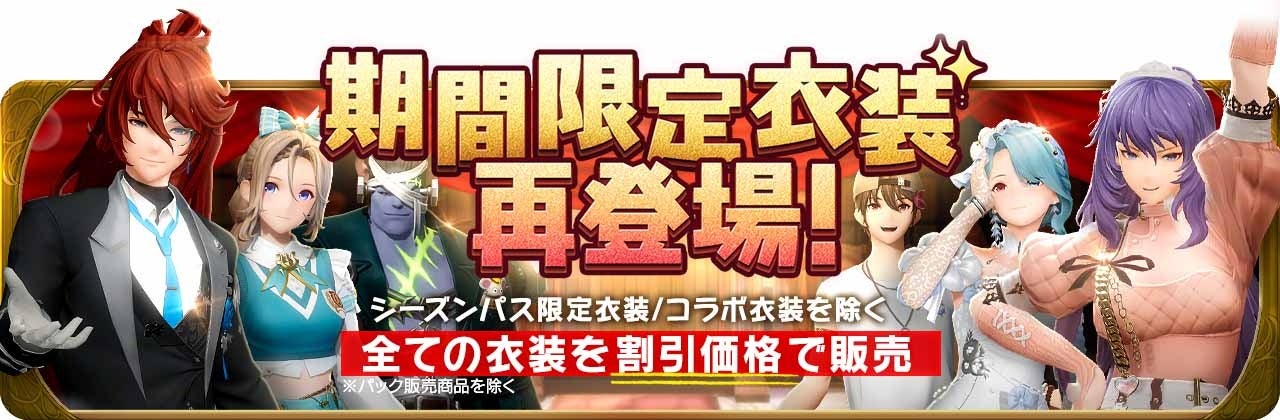 (1).グランサガサービス1周年を記念し、過去に販売した衣装を復刻販売します。