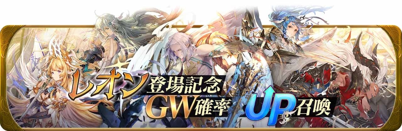 [召喚]に「レオン登場記念GW確率UP召喚」ページが追加され、対象のGW提供割合が上昇します。