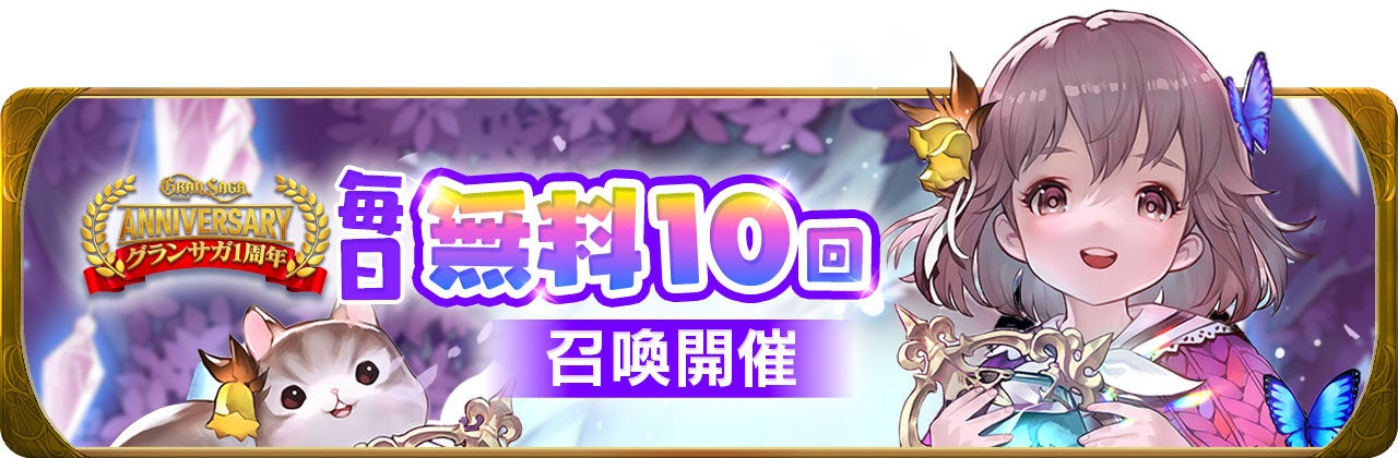 本日実施しましたアップデートより、グランサガをプレイしてくださっている皆様への感謝を込めた豪華イベントを多数開催しております!最大560回無料召喚が行える「毎日無料10回召喚」をはじめ、「天使グランウェポン」や「古代グランウェポン」が必ずもらえる豪華ログインボーナスなど、盛りだくさんな内容となっております!