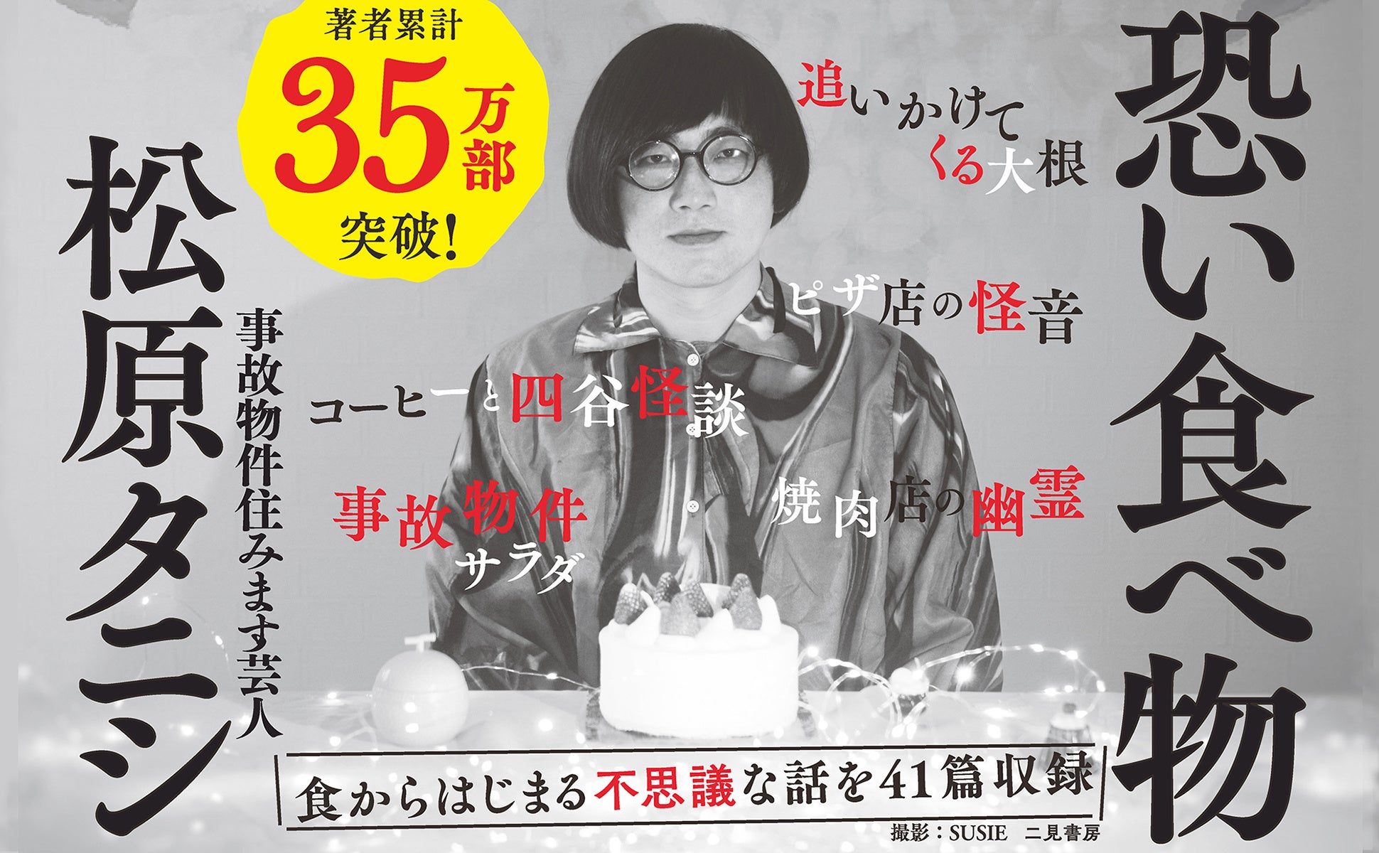 ベストセラー『事故物件怪談 恐い間取り』シリーズなどを生み、著者累計35万部を突破した松原タニシさん。本邦初とも言える「食からはじまる怖い話」に挑んだ最新刊『恐い食べ物』が発売即緊急重版となりました。
