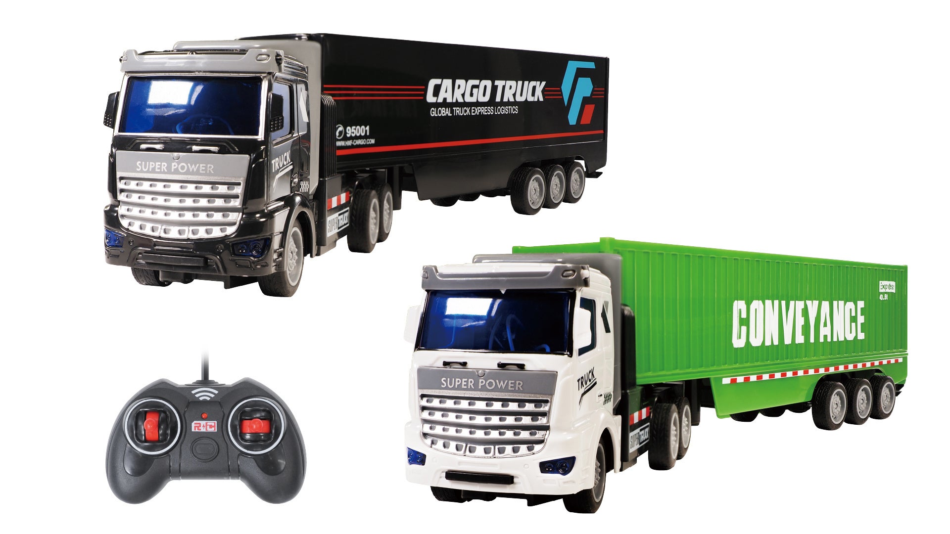 特徴:ロングサイズのコンテナ車を自在に操れ!!ちょっとマニアック?なコンテナ車のRCカーが登場しました♪運転席や前進中はライトが点灯するリアルな仕様。さぁ君は、ながーいコンテナ車を壁にぶつけず自在に操作できるかな!?車庫入れにも挑戦してみよう!!