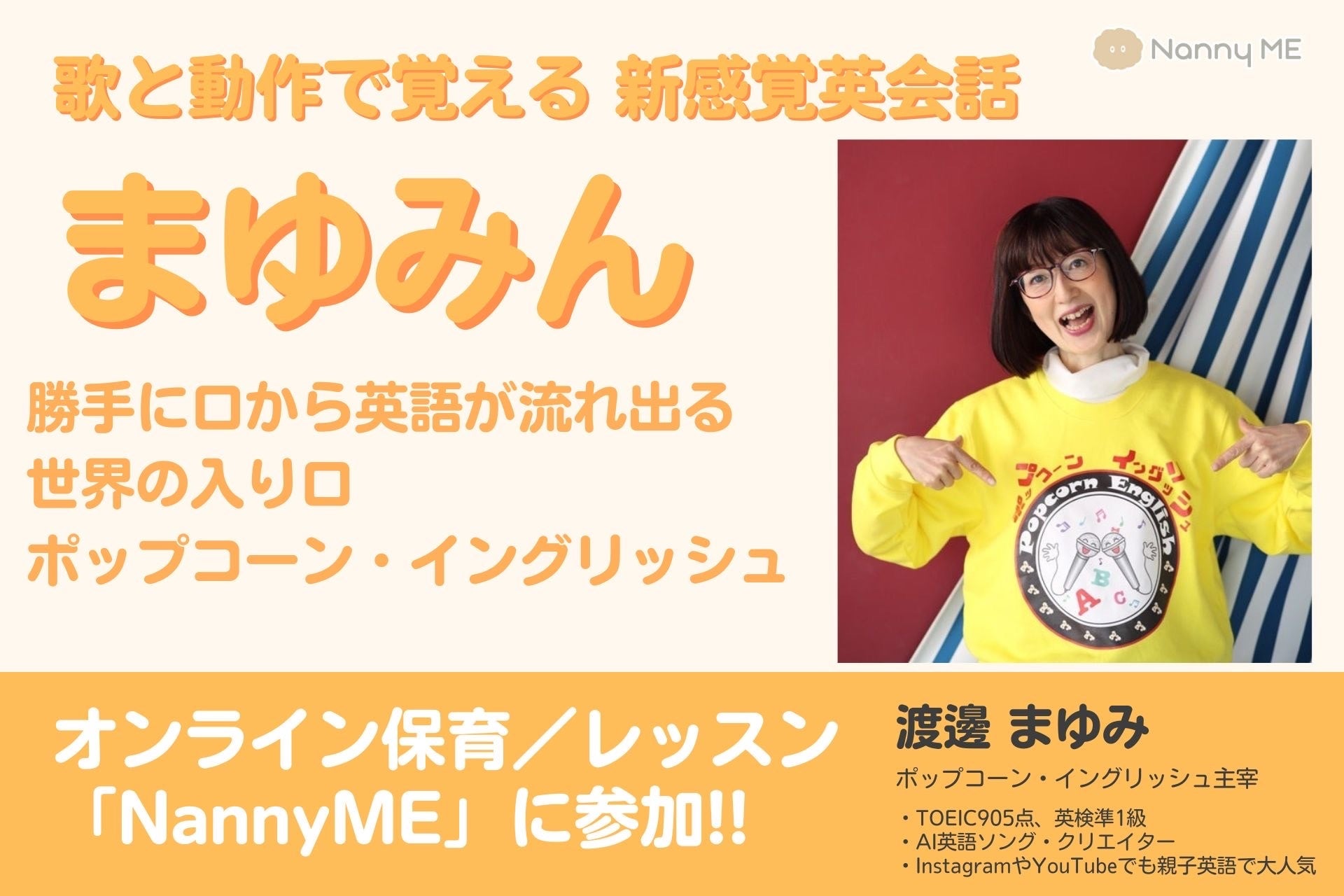 オンライン保育/レッスン「NannyME」(運営:株式会社七色、代表取締役CEO:佐々木綾香)は、歌って踊るオンライン英会話コーチ・AI英語ソングクリエイターとして親子から大人気の「まゆみん」先生を、英語レッスンのNanny(講師)として新たに迎えました。