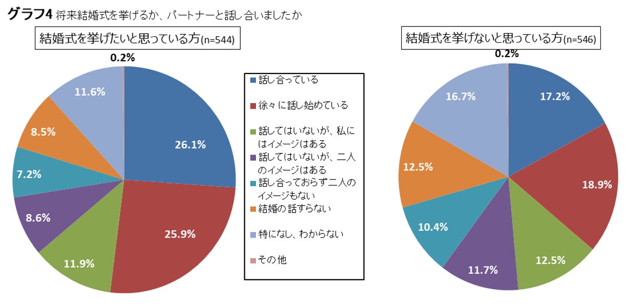 Ⅲ.「パートナーあり」の方に対して)パートナーと結婚式を挙げるか、話し合った経験の違い