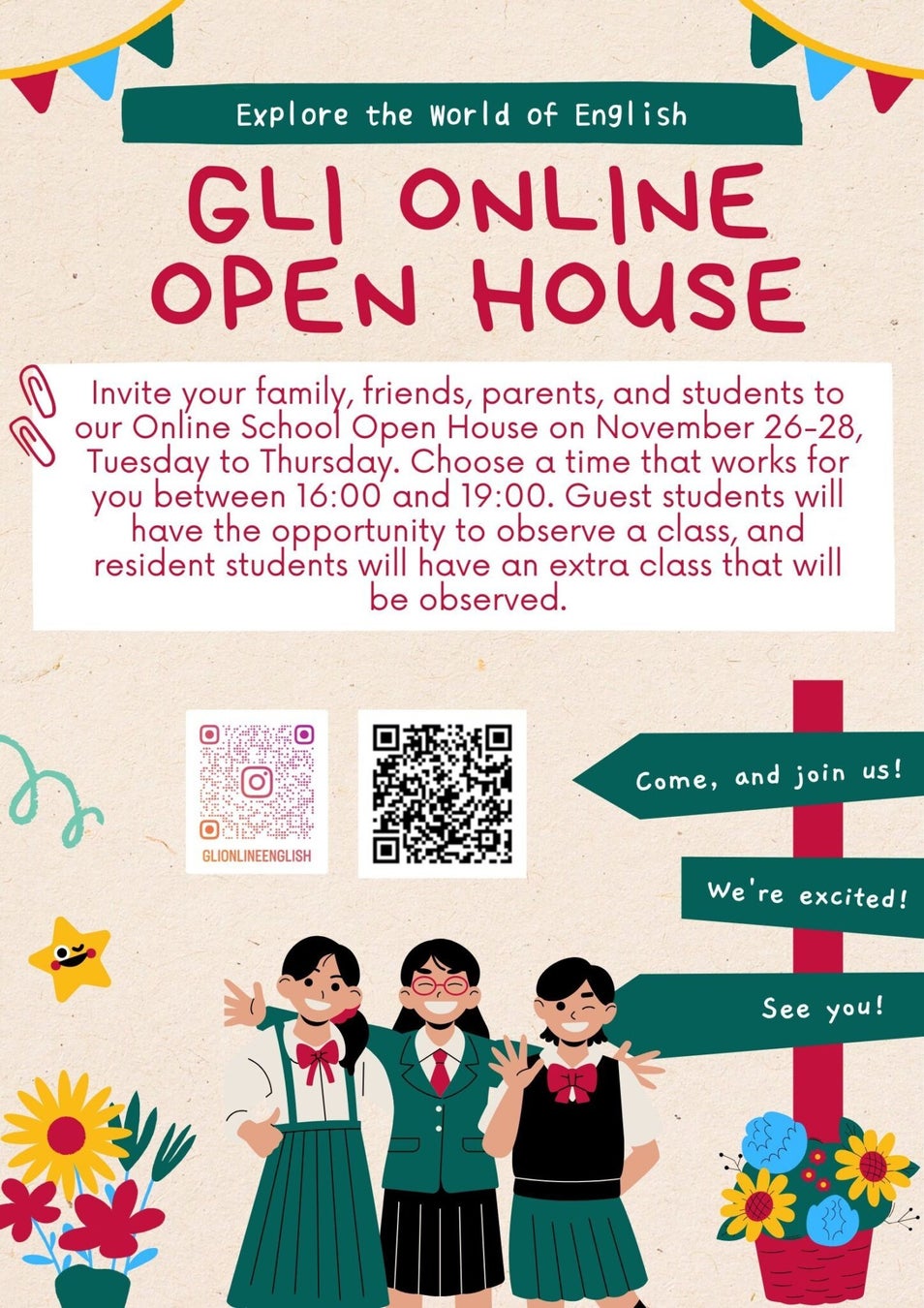 「GLIオンライン」は本格4技能英語力を育成する「Global Learner’s Institute」が提供するオンライン英会話プログラムです。この度、世界の舞台で活躍する人材を育てるGLIオンラインが、英語学習を検討中の皆様に向けた特別イベント「OPEN HOUSE」を開催いたします。このイベントでは、GLIオンラインのレッスンを実際に見学できるほか、英語を使った楽しいアクティビティも体験できます。