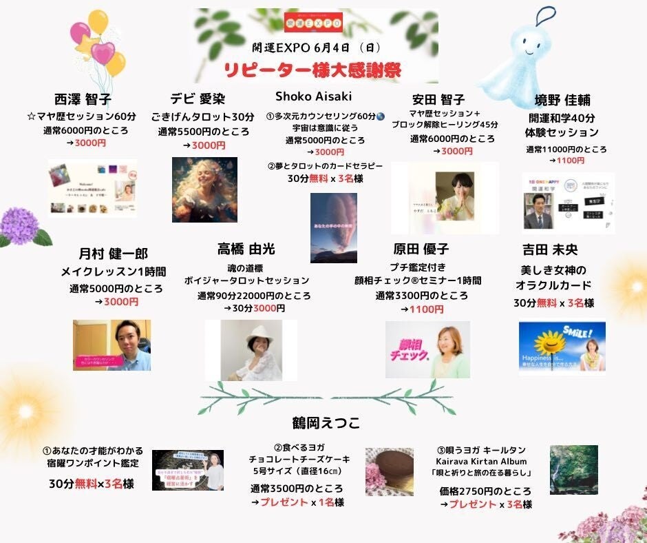 開運EXPO出展者のサービスをアンケートにお答えいた方の中から抽選でプレゼント!