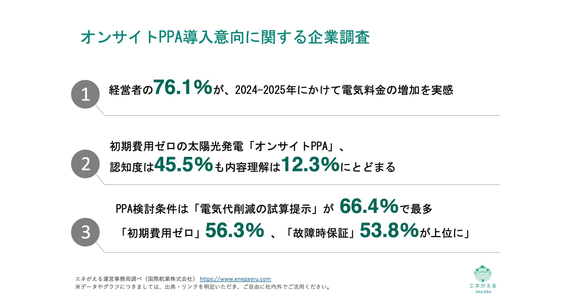 1 情報の出典として「エネがえる運営事務局調べ」の名前を明記してください。