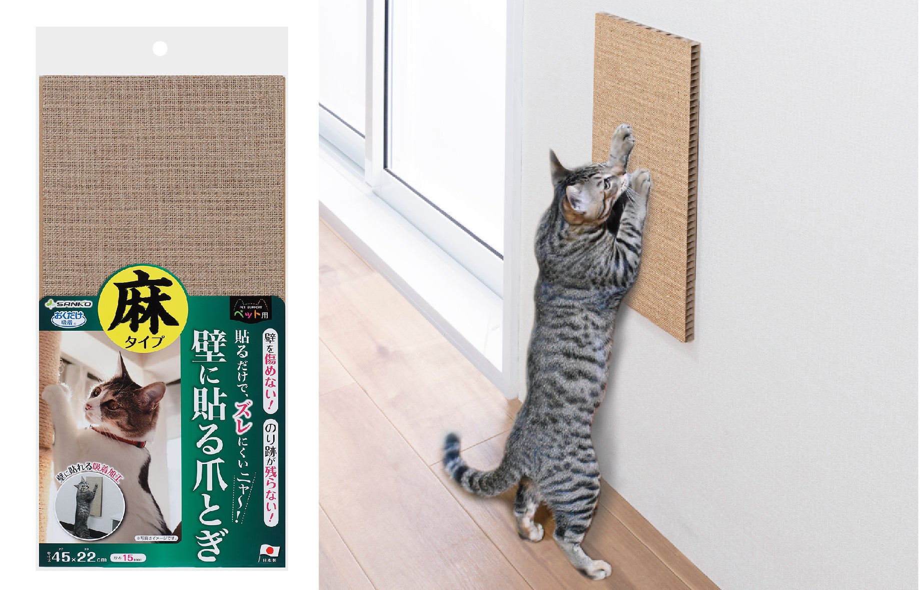 吸着壁に貼れる猫のつめとぎ 麻: https://onlineshop.sanko-gp.co.jp/products/297