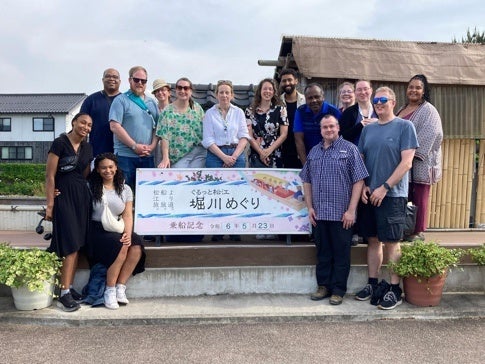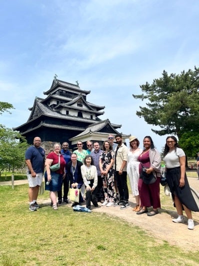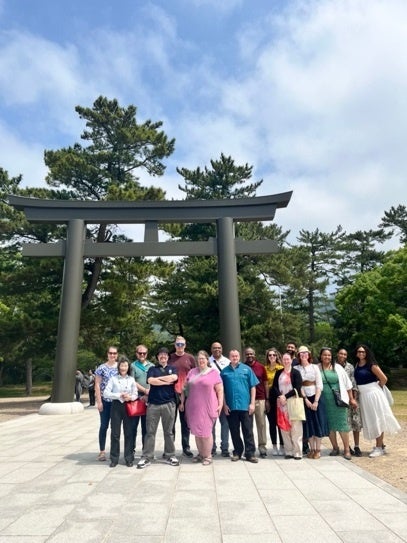 また、学会終了後には地元の文化を学ぶフィールドセミナーが開催され、5月23日から26日まで、国際コミュニケーションコースのエレナ・ケイン教授、江口真理子教授、メリッサ・ハントリー講師が島根の文化を紹介しました。参加者は、足立美術館、松江城、堀川遊覧船、出雲大社、石見銀山を視察し、地元のお刺身や、お寿司、出雲そばなどを堪能しました。フィールドセミナーのガイドを務めた国際コミュニケーションコースのハントリー講師(アメリカ出身)は「島根県の史跡を訪れることで、島根県の独自性を強調したかった。島根県には全国的、世界的な規模で古くから語り継がれてきた物語がある。島根県民が誇りを持って自分たちの生活をこの歴史と結びつけ、学会参加者にもこの歴史を体験してもらった」と話しました。