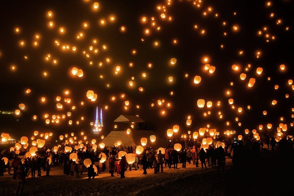 本祭のニュー・グリーンピア津南会場では、スカイランタン打ち上げの他、スノーボードジャンプ大会「SNOWWAVE」や露店、ステージイベントなど様々な催しを企画しています。また、町中心部では大割野特設会場も開催予定です。