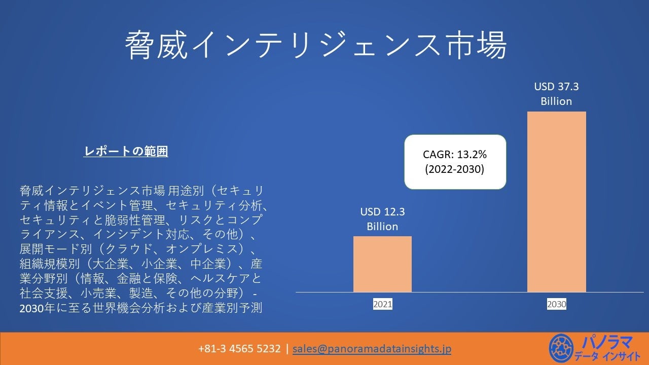 脅威インテリジェンスの世界市場規模は2021年に123億米ドル、2030年には373億米ドルに達すると予測され、2022年から2030年までの予測期間中に年平均成長率(CAGR)13.2%で成長するとされています.