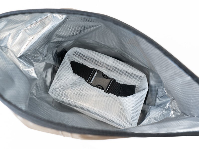 ロールアップしたバケツをクーラーにぴったり収納。荷物はかさばらず、ニオイや汚れも気にせず持ち帰れます。
