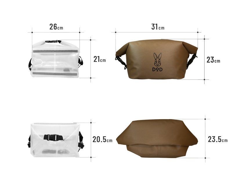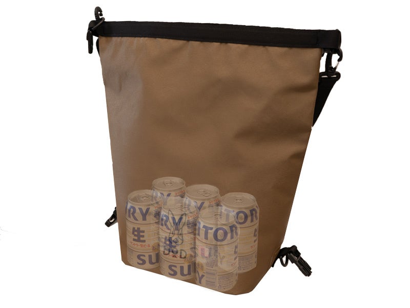 背負いや肩掛けができてスマートに持ち運び可能。ブラウンカラー&ロゴ入りでアウトドアにも馴染みます。