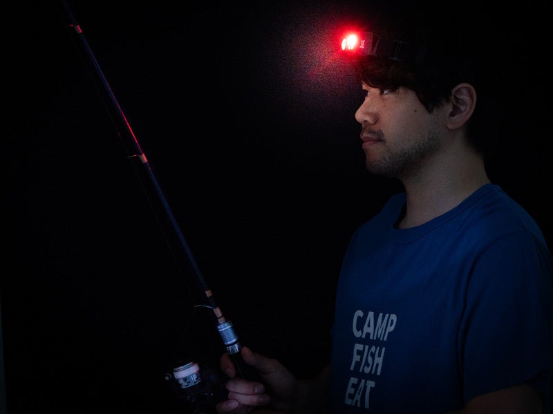 水に吸収されやすい赤色ライトで魚に警戒心を与えず釣りに集中できます。