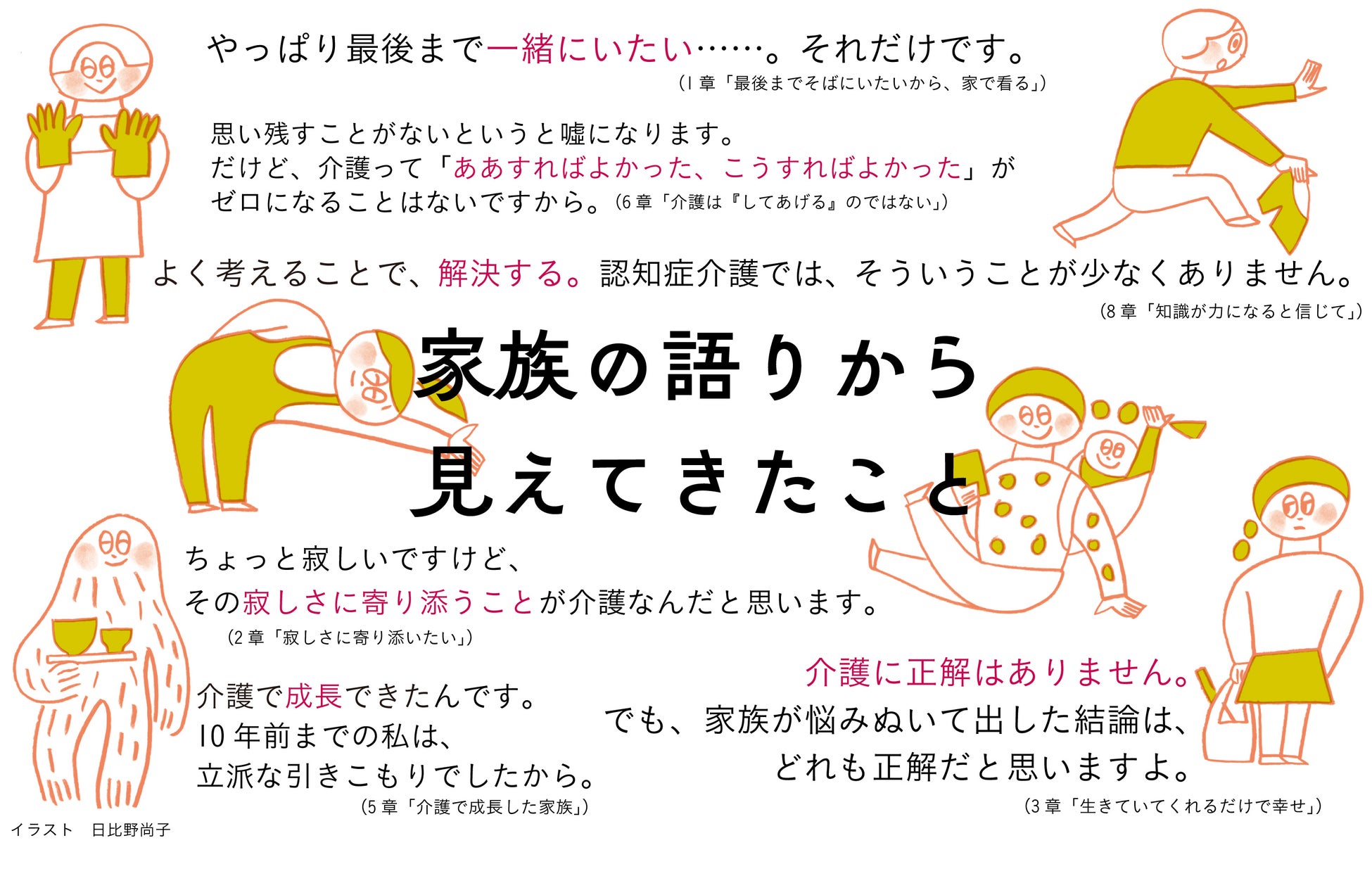 一人ひとりの語りとそれに対する【解説】には、明日からの介護生活に役立つ、介護者が知っておきたいことが満載。不安や悩み、暮らしの工夫、向き合い方……家族の語りから見えてきたことがありました。