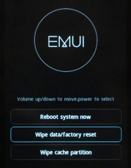 ステップ4:EMUIの画面(リカバリーモード)が表示されたら音量上ボタンを放します。