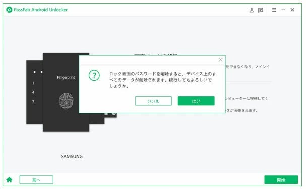 ステップ3:AndroidをUSBケーブルでパソコンに接続後、「画面ロックを解除」を選択します。