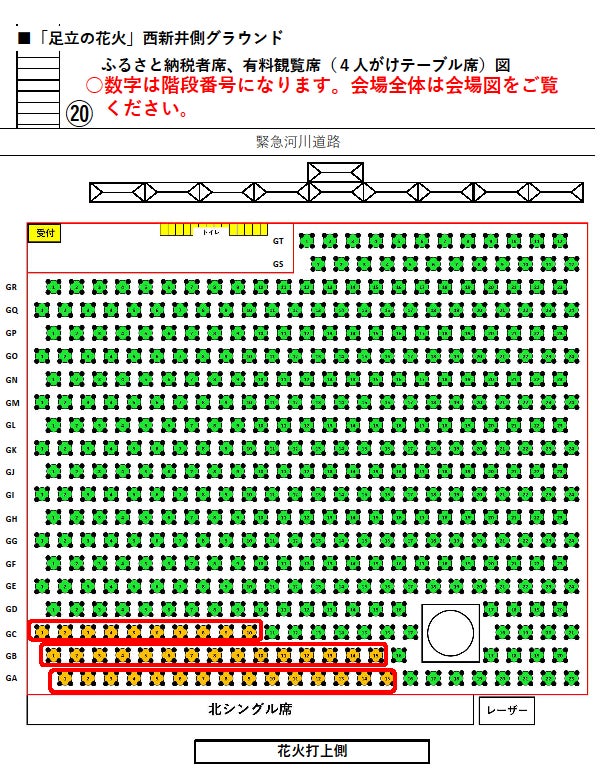【西新井側 4人がけテーブル席 GA列1-15、GB列1-15、GC列1-10】