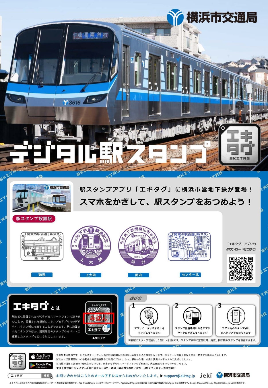 横浜市交通局は、令和7年1月21日(火)から駅スタンプアプリ「エキタグ」を導入します。