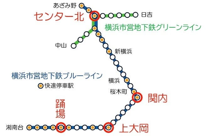 センター北駅、関内駅、上大岡駅、踊場駅の4駅(詳しい設置場所等はアプリ内で確認できます)