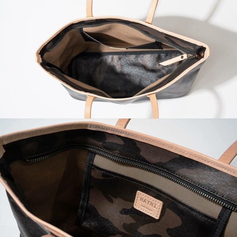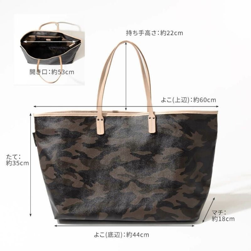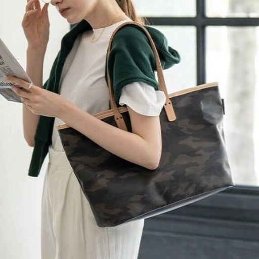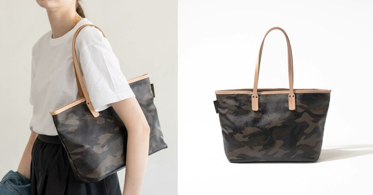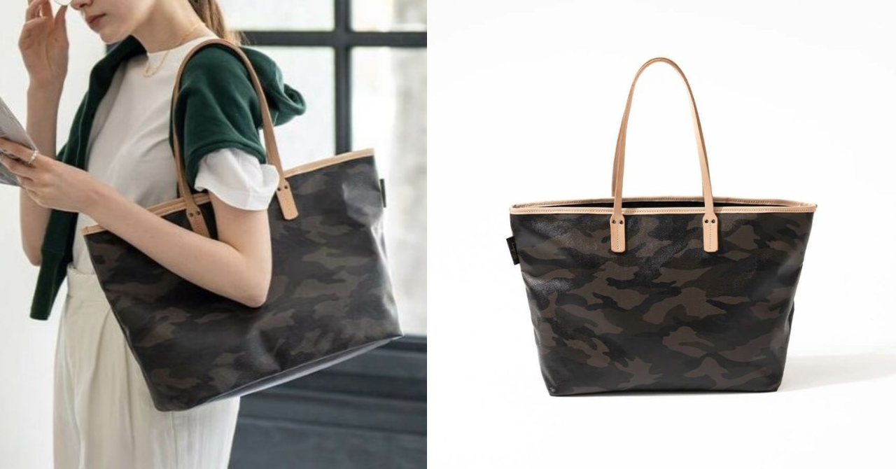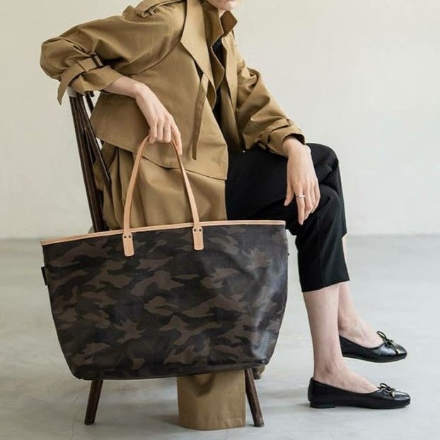 日本製の丁寧な縫製と上品な迷彩柄が、いつものコーデを格上げするトートバッグ。