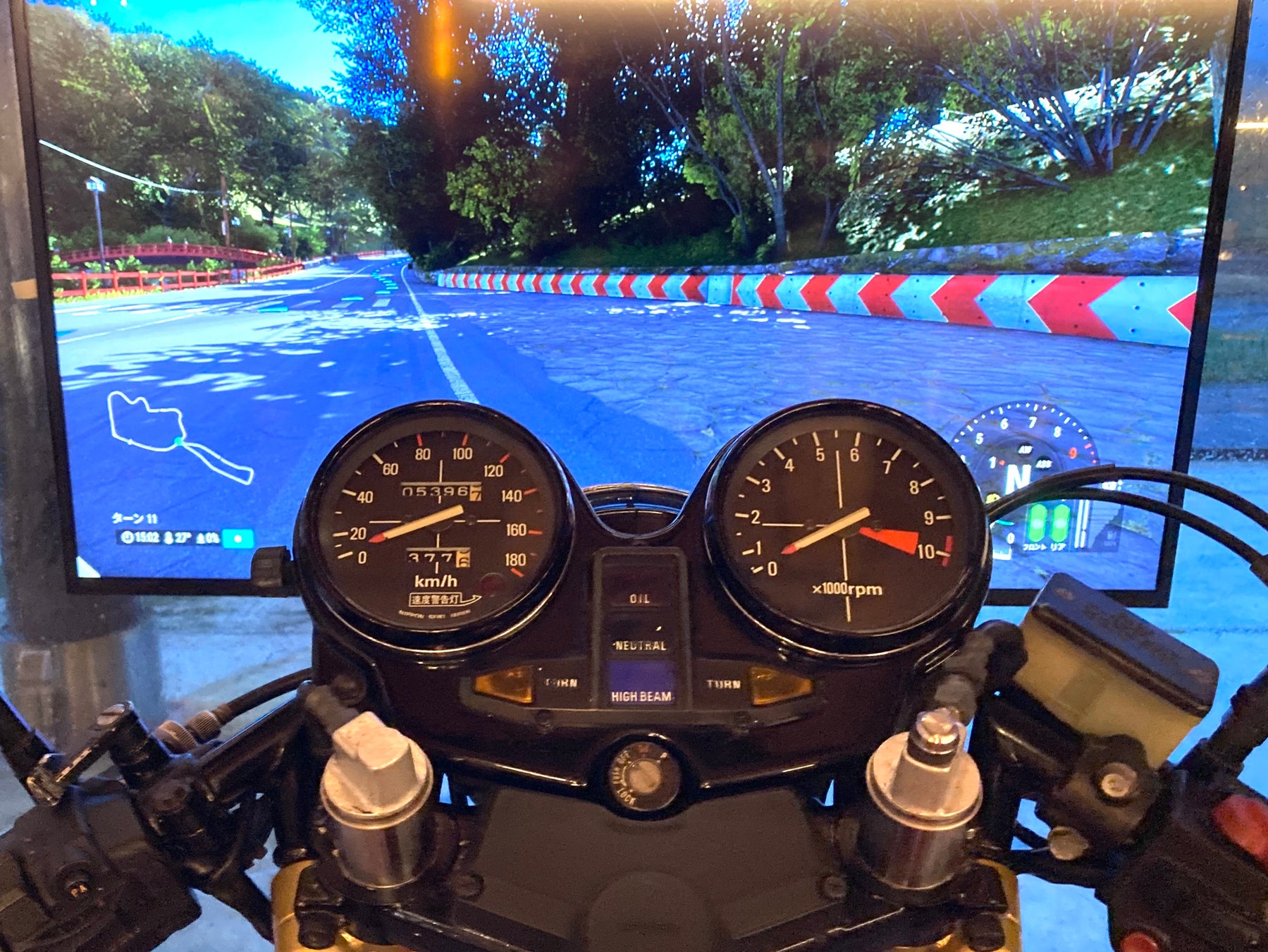 本展示では、当社が東京モーターサイクルショー2026にて出展した、「バリバリ伝説」作中に登場する主人公の愛車CB750Fの実車を用意。プロトタイプ社が開発した最新のVRシミュレーターと連動することでリアルな走行を体験することが可能で、車体に取り付けたカメラ+センサーにより、操作に応じた映像がモニターに反映される構造となっています。