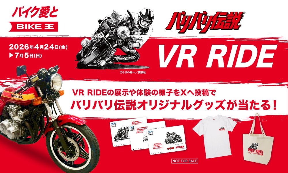 「常識を壊し、新たな価値と感動を生む」を企業理念に掲げ、「バイクライフの生涯パートナー」を目指す株式会社バイク王&カンパニー(代表取締役CEO:澤 篤史、本社:東京都世田谷区、証券コード:3377、以下「当社」)は、2026年4月24日(金)から7月5日(日)まで、静岡県函南町の「バイカーズパラダイス南箱根」にて、人気漫画「バリバリ伝説」を再現したCB750Fの実車と、最新のVRシミュレーターを融合した体験型展示「バリバリ伝説 VR RIDE」を実施します。