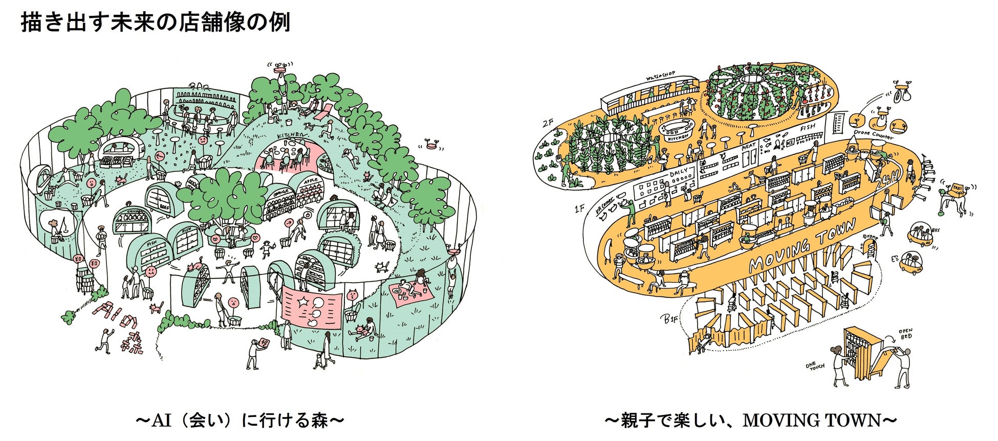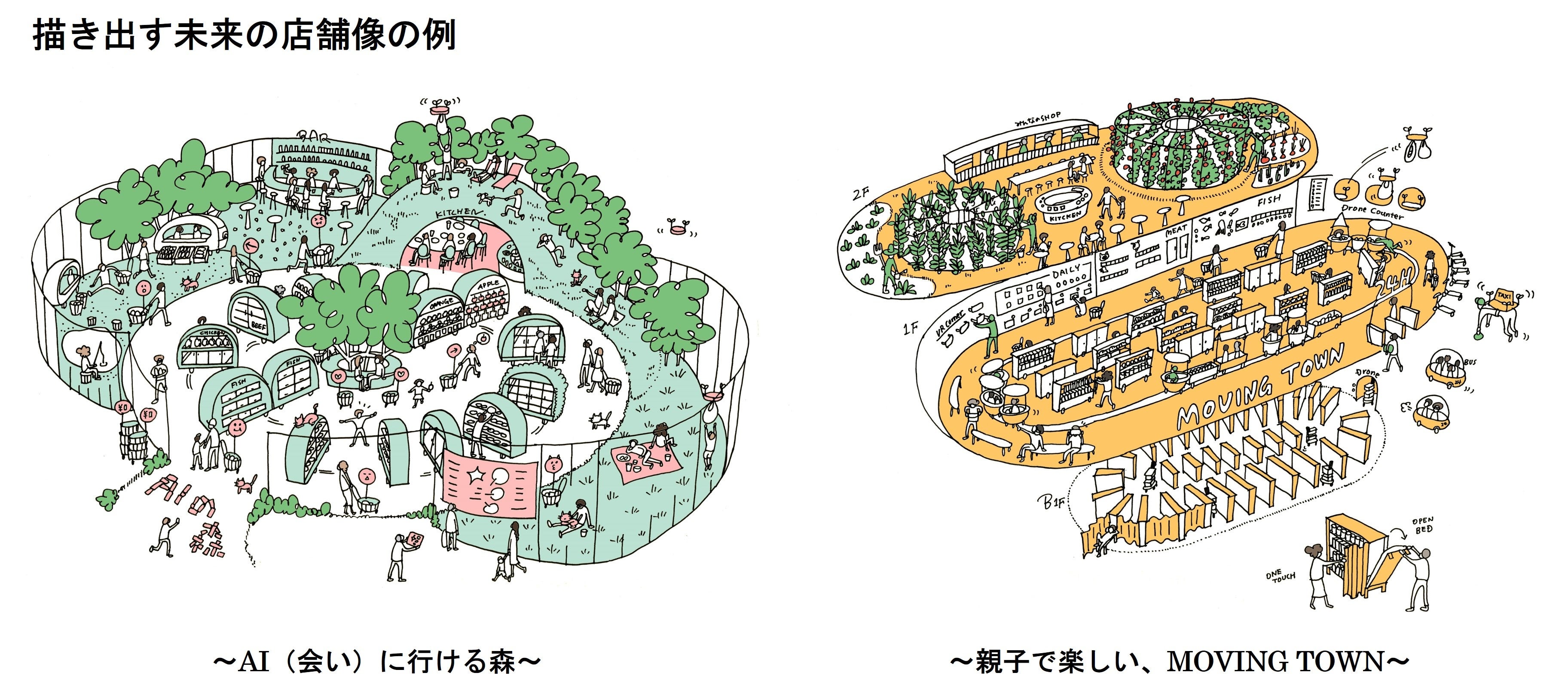 顧客である小売業やパートナー企業、社外研究者などのさまざまな立場の人と共創し、未来の店舗像を描きます。