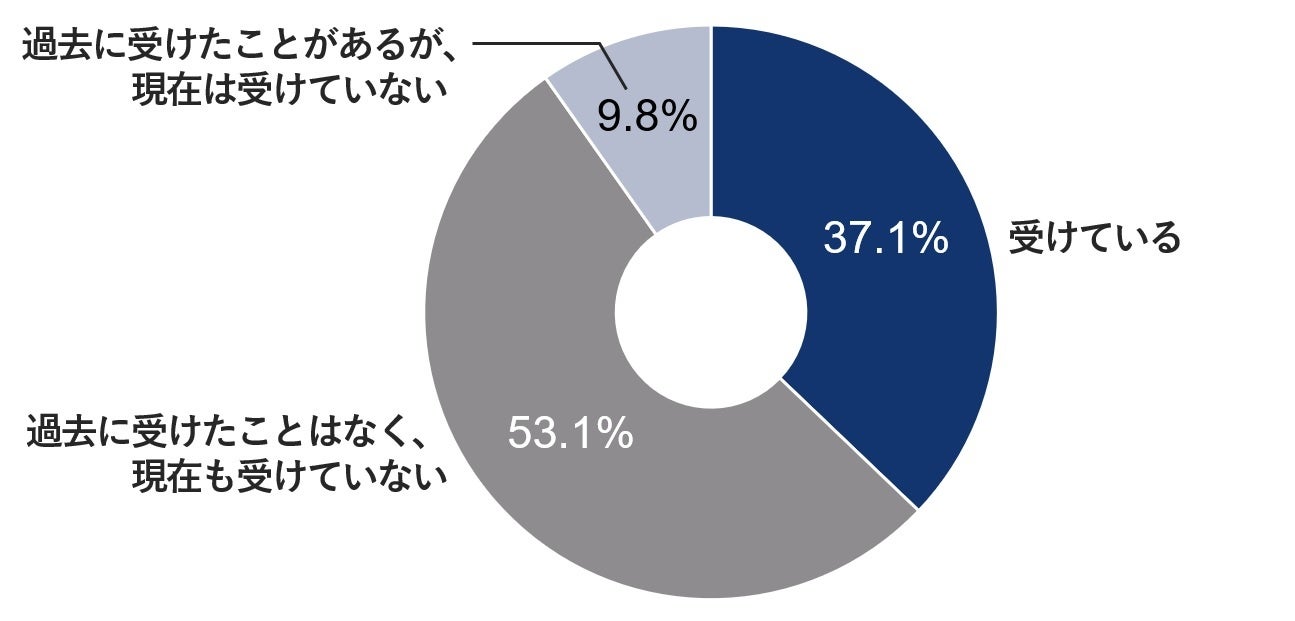 中小企業経営者に伴走支援を受けたことがあるか聞いたところ、「過去に受けたことがあるが、現在は受けていない」を含め一度でも受けたがことがある企業が46.9%、「過去に受けたことはなく、現在も受けていない」と一度も受けたことがない企業が53.1%です。