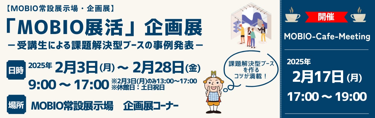2月3日(月)~2月28日(金)、「MOBIO展活」受講企業7社が出展!「失敗しない展示会を作るための講座」で学んだ成果を展示します。