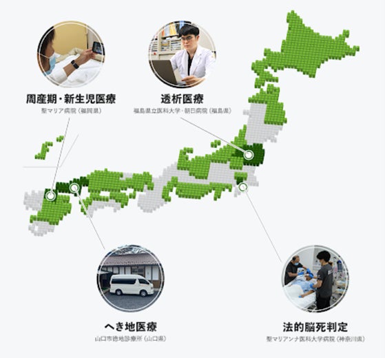 当初、へき地医療や周産期・新生児医療、COVID-19感染症対策での活用が中心でしたが、現在では、透析医療、臓器提供体制構築支援、妊婦検診、災害・緊急対応といった多様な医療分野での活用に加えて、次世代を担う医療従事者の育成現場での活用も広がっています。また、医療MaaS車両への搭載や、オンライン診療用ブースへの設置など、他企業との協業を通じて、地方の医療DXを支援しています。