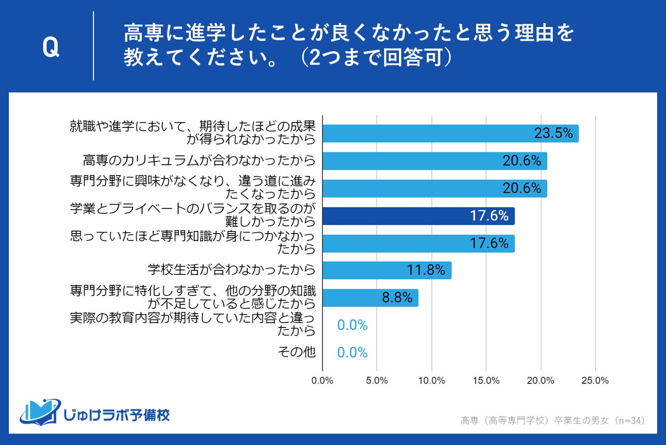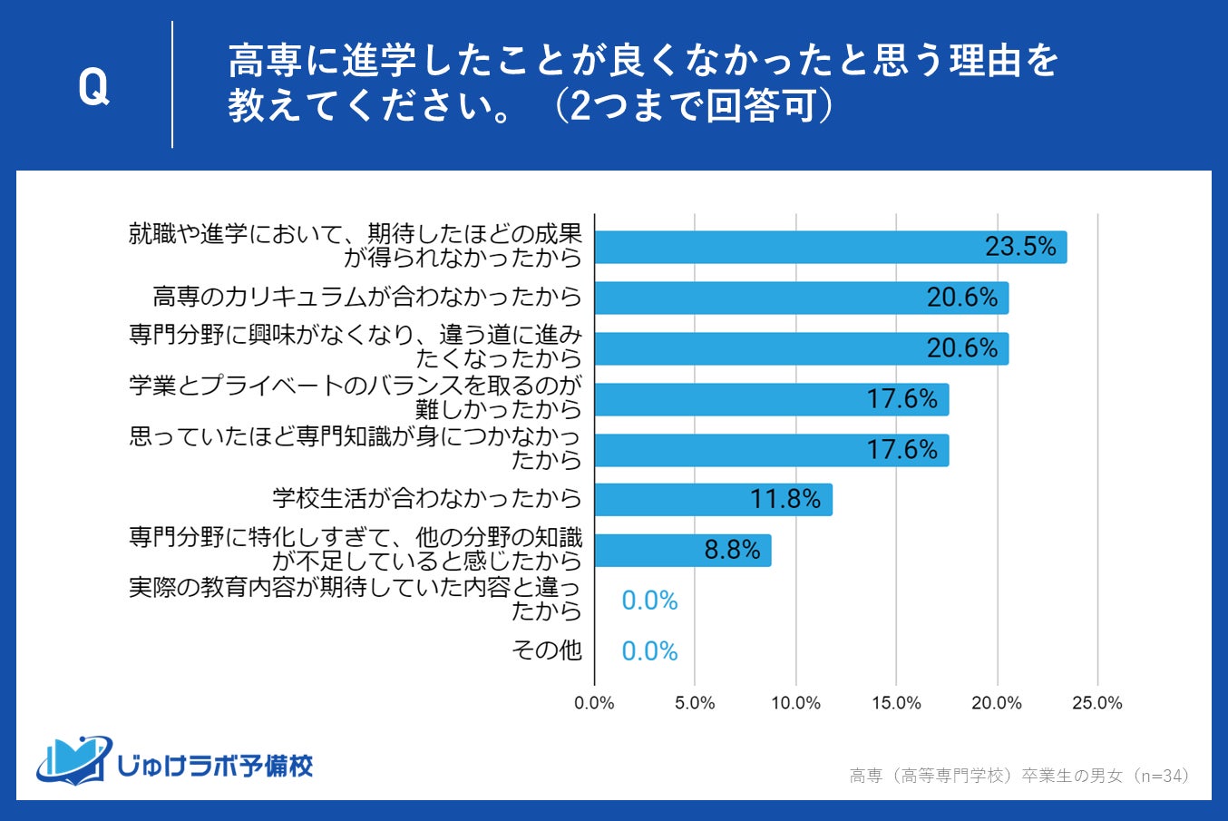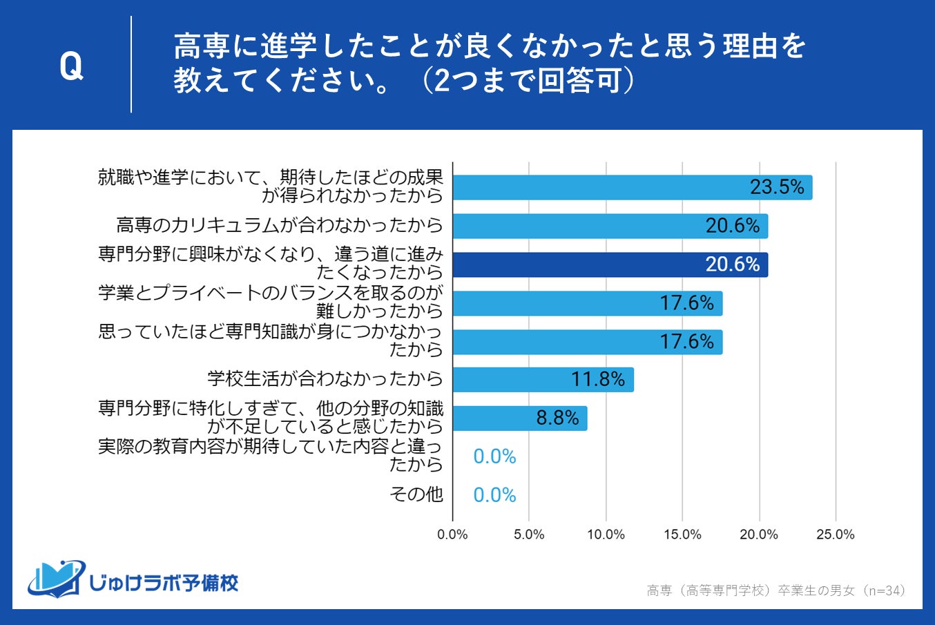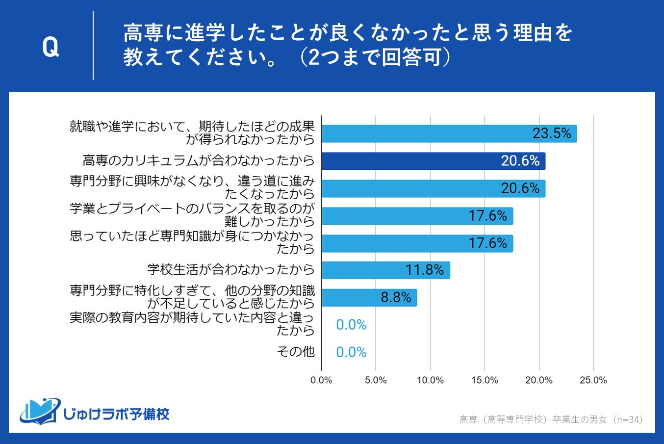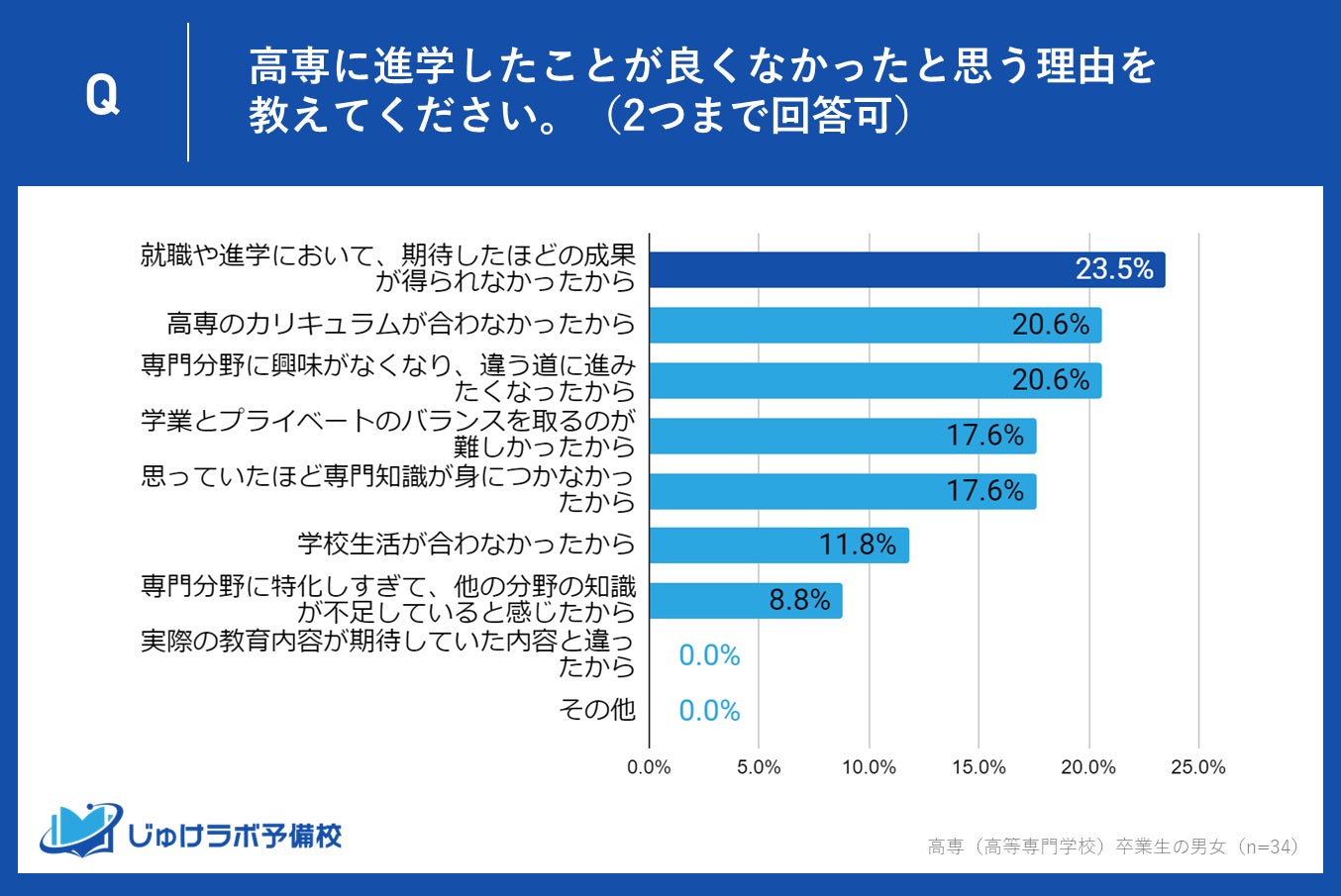 n=高専に進学して「あまり良くなかった」「良くなかった」と回答した34名の高専卒業生