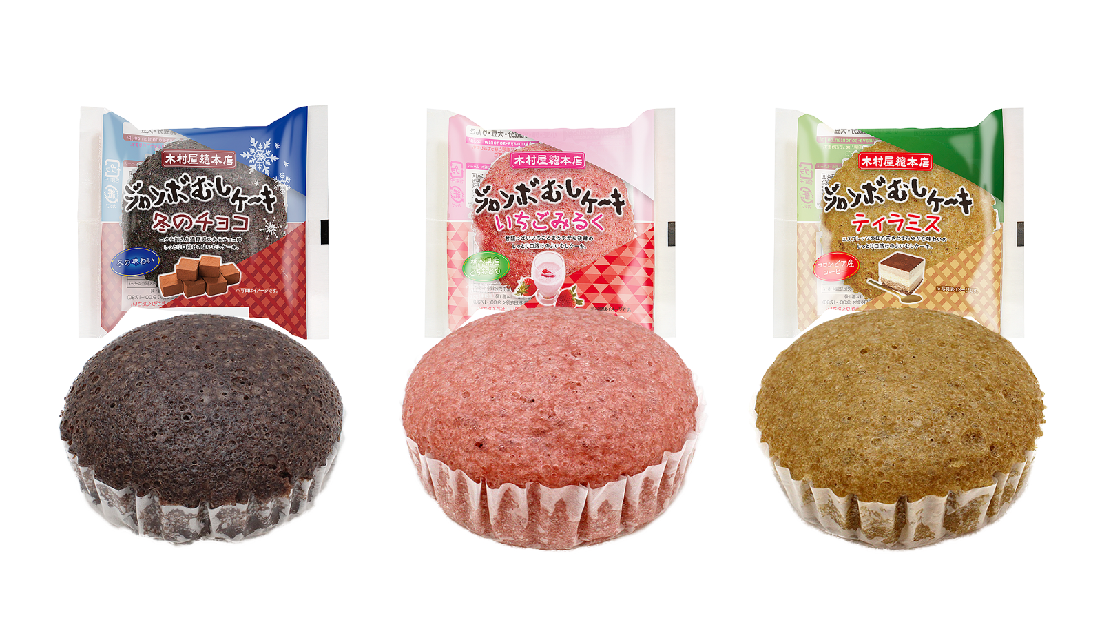 【木村屋總本店】【新発売】12月のジャンボむしケーキは冬を感じる濃厚な味わい。栃木県産とちおとめを使用した「いちごみるく」など3種類のフレーバーを関東近郊のスーパーで2023年12月1日発売
