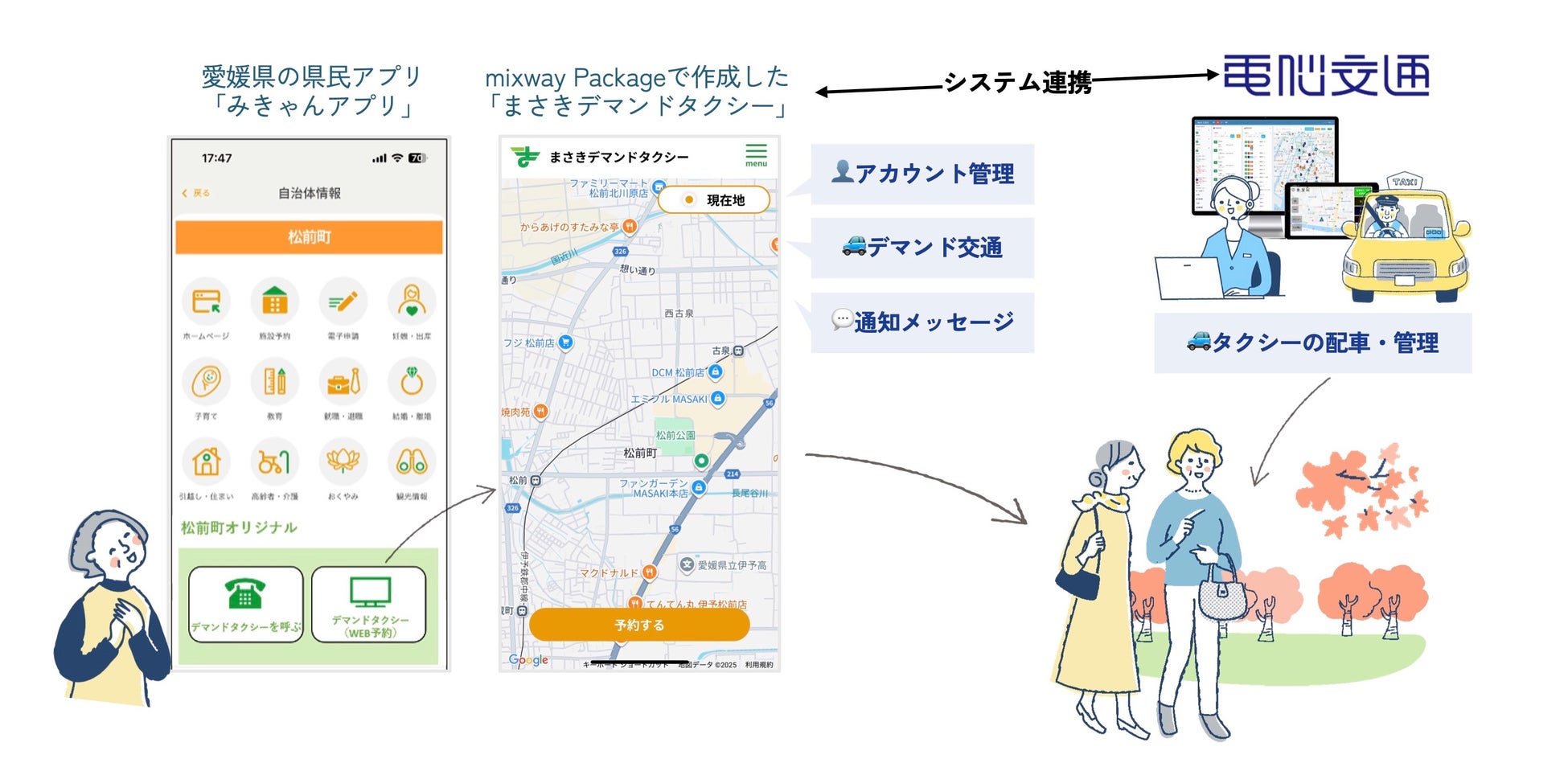 愛媛県松前町のデマンドタクシー実証実験にモビリティ統合アプリ開発サービス「mixway Package」を提供