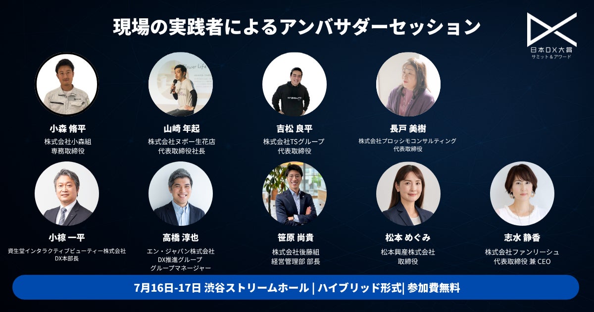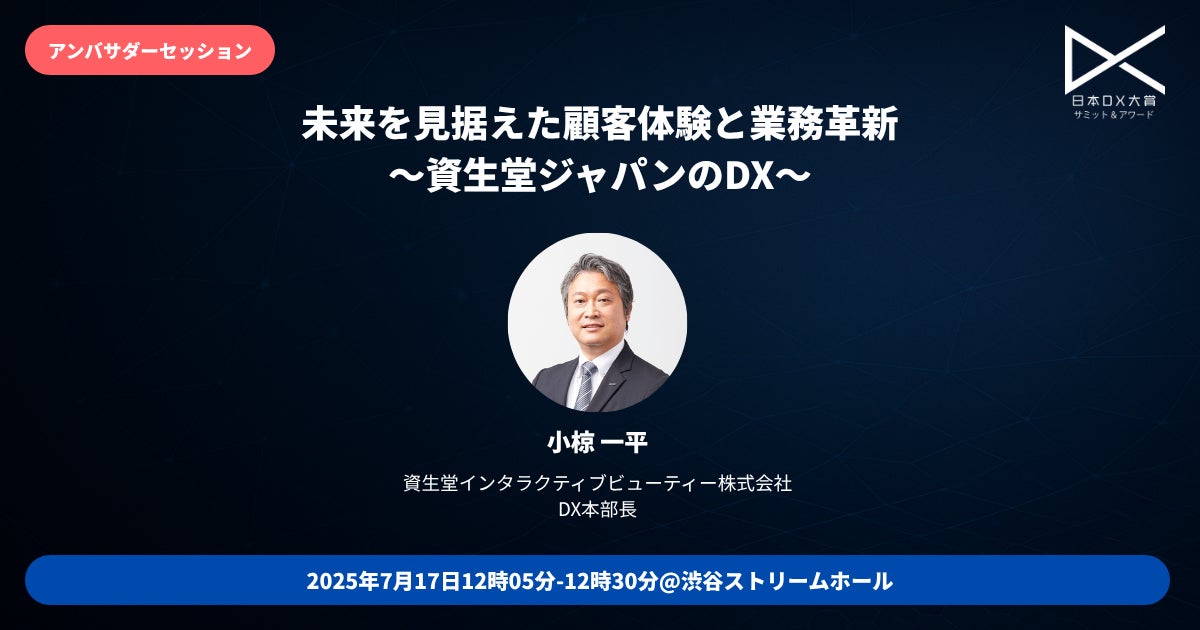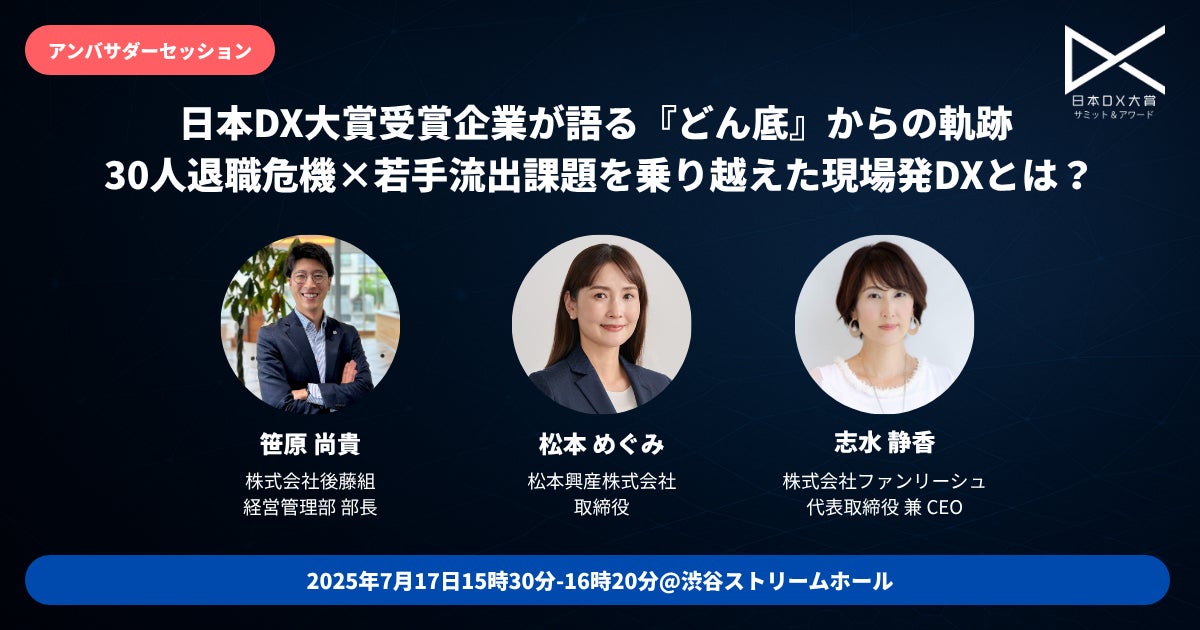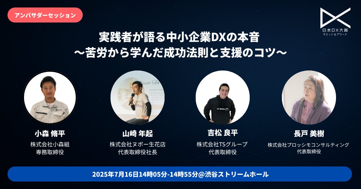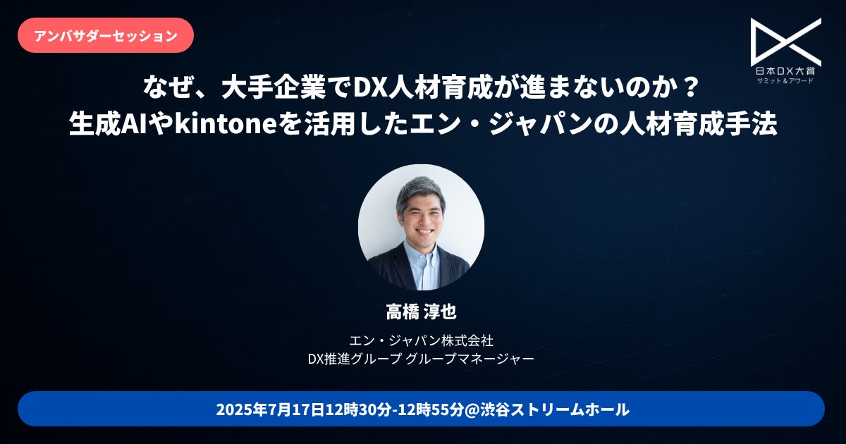 一般社団法人日本デジタルトランスフォーメーション推進協会(所在地:東京都千代田区、代表理事:森戸裕一)は、2025年7月16日(水)および17日(木)に渋谷ストリームホールにて開催される「日本DX大賞2025サミット&アワード」において、注目のアンバサダーセッションを実施いたします。