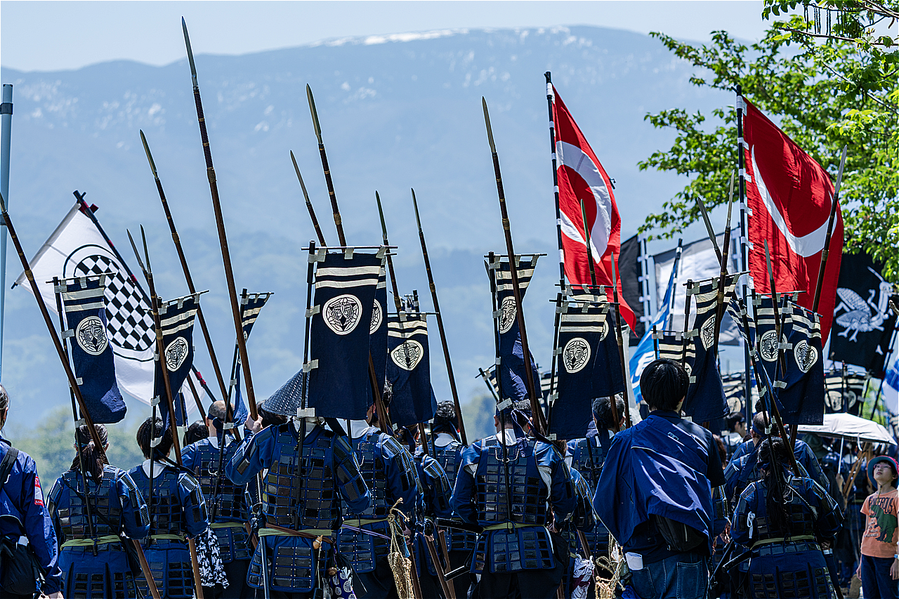 本物の甲冑を着たサムライの軍勢がまちなかに現れての武者行列、上杉謙信公が合戦前に勝利を祈願する儀式「武禘式」、そして約700名が上杉謙信公・武田信玄公の軍にそれぞれ分かれ、戦国時代を代表する死闘「川中島の合戦」を迫力満点に再現します。日本でも類を見ない、米沢ならではの大型サムライイベントです。
