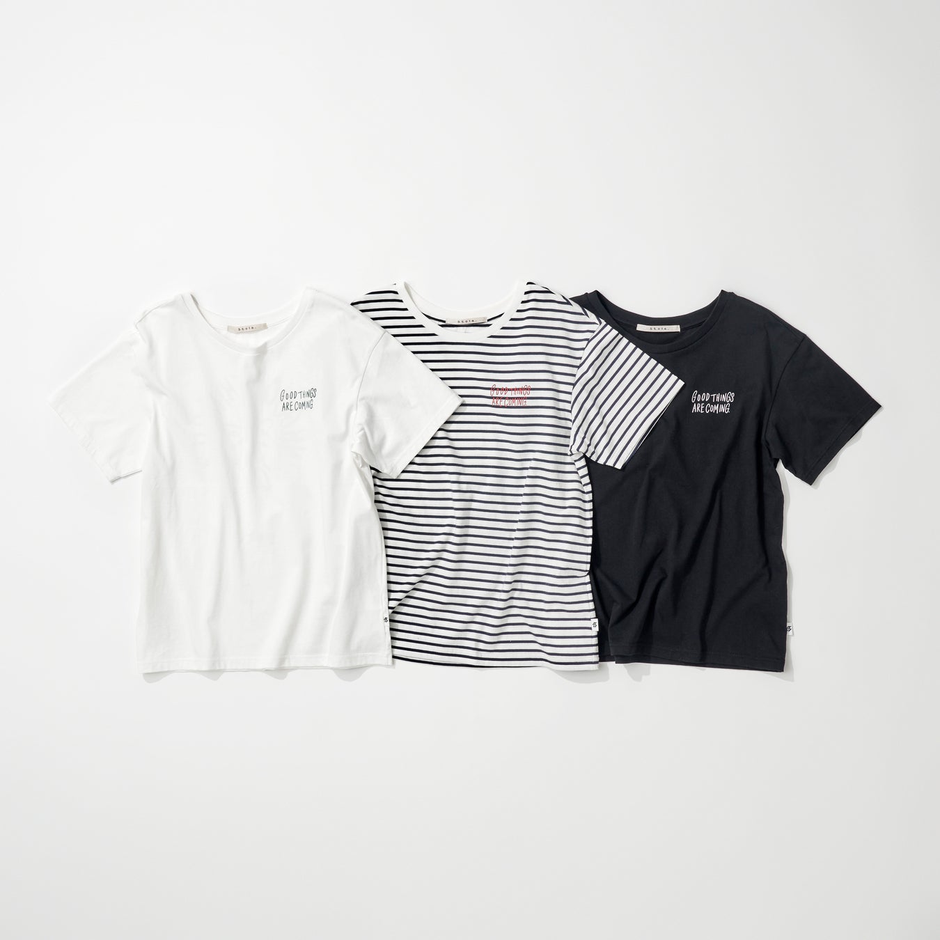 「Good Things Are Coming(良いことは向こうからやってくる)」というポジティブなメッセージをタイポグラフィーとイラストで表現。フロントの左胸には2行のメッセージをプリント、背面には同じメッセージをサークルロゴであしらいながらクローバーモチーフを囲っています。クローバーモチーフはGood Thingsというワードから着想し、ハートのような形の葉を持つ四つ葉のデザインに。