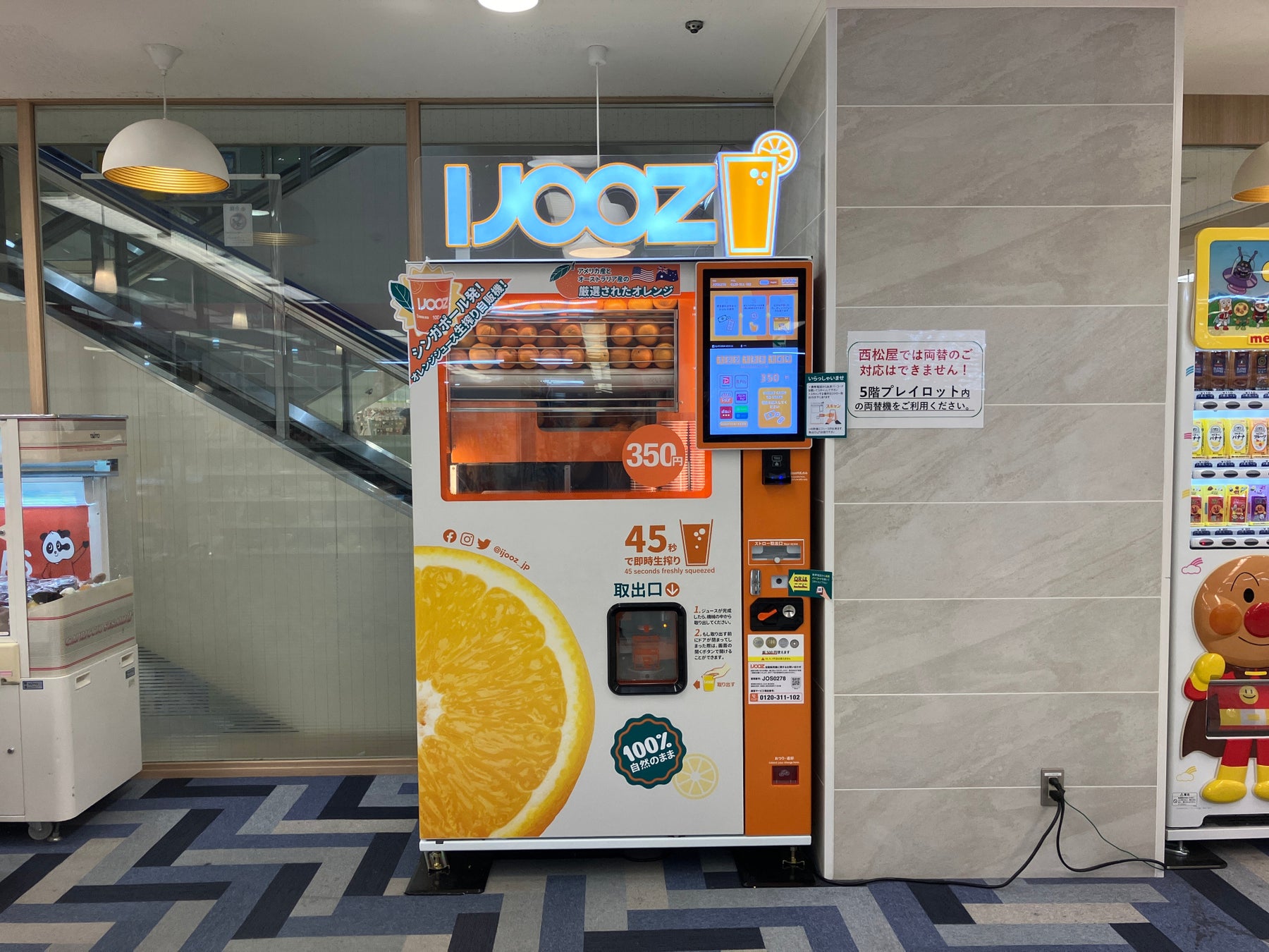 生搾りオレンジジュースの自動販売機を展開するIJOOZ(アイジュース)株式会社は、「LINOAS(リノアス)」2F乃が美前・3F西松屋前で、生搾りオレンジジュース自動販売機の稼働を開始しました。