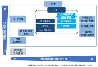 日本管財ホームページ https://www.nkanzai.co.jp/pfi-work/ 、 https://www.nkanzai.co.jp/ppp/